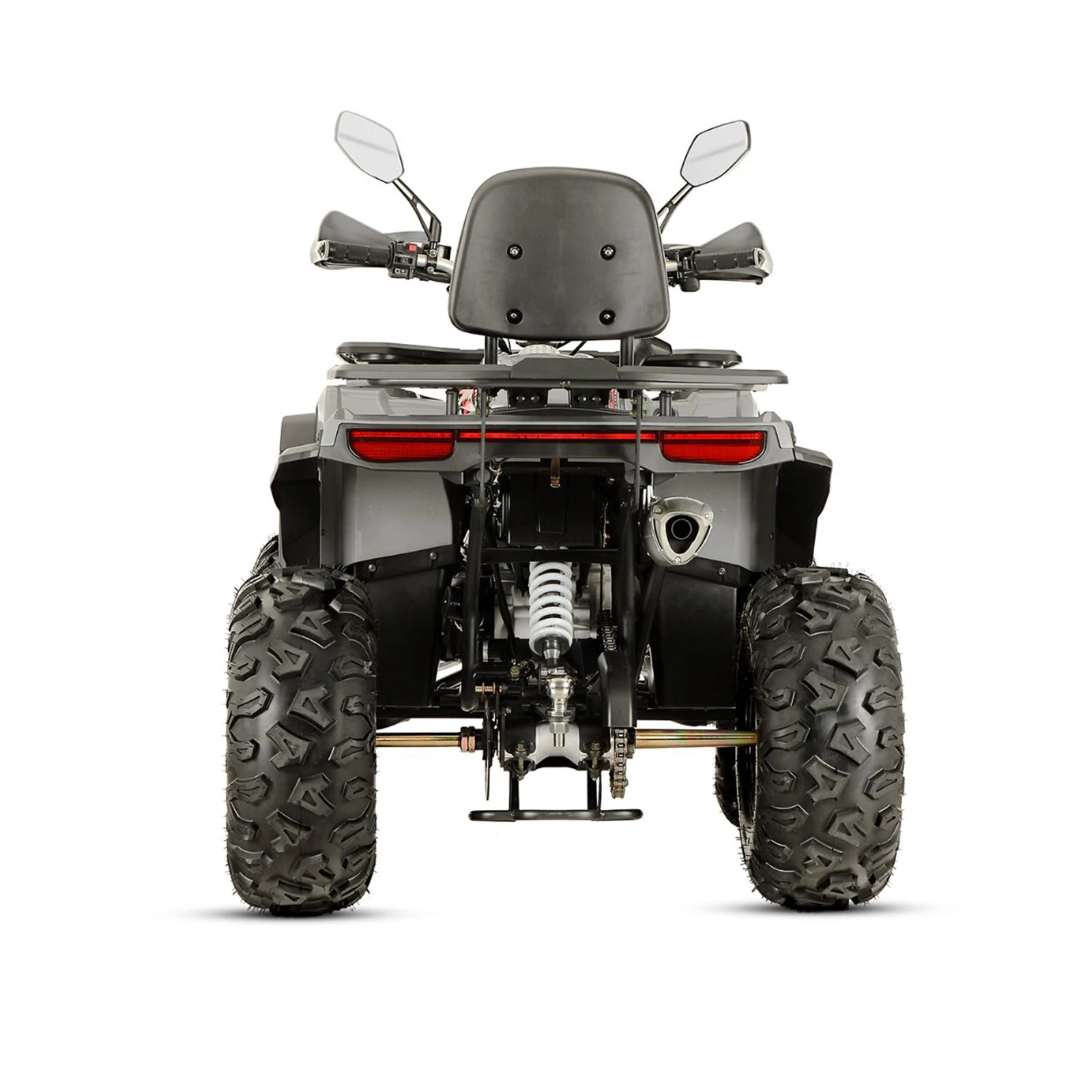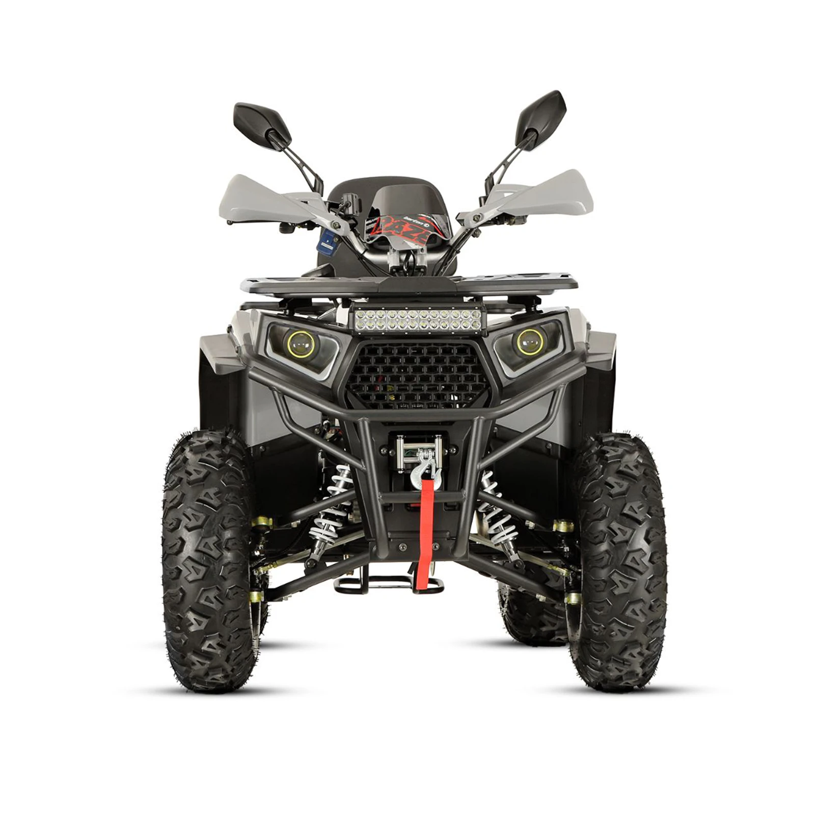 În echiparea de bază a Barton Raze 200 găsim handbare pentru protecția mâinilor, oglinzi utile și un panou electronic de instrumente cu mini parbriz, care asigură controlul complet al parametrilor vehiculului chiar și în cele mai dificile condiții meteo. Șaua confortabilă, cu spătar pentru șofer, precum și sistemul de portbagaje față și spate pentru montarea accesoriilor suplimentare sau a bagajelor, fac ca orice excursie lungă să fie la îndemâna ta. Quadul este echipat standard cu iluminare LED modernă, frâne hidraulice pe disc, anvelope off-road de înaltă calitate și troliu frontal. Raze este pregătit pentru orice provocare off-road palpitantă.